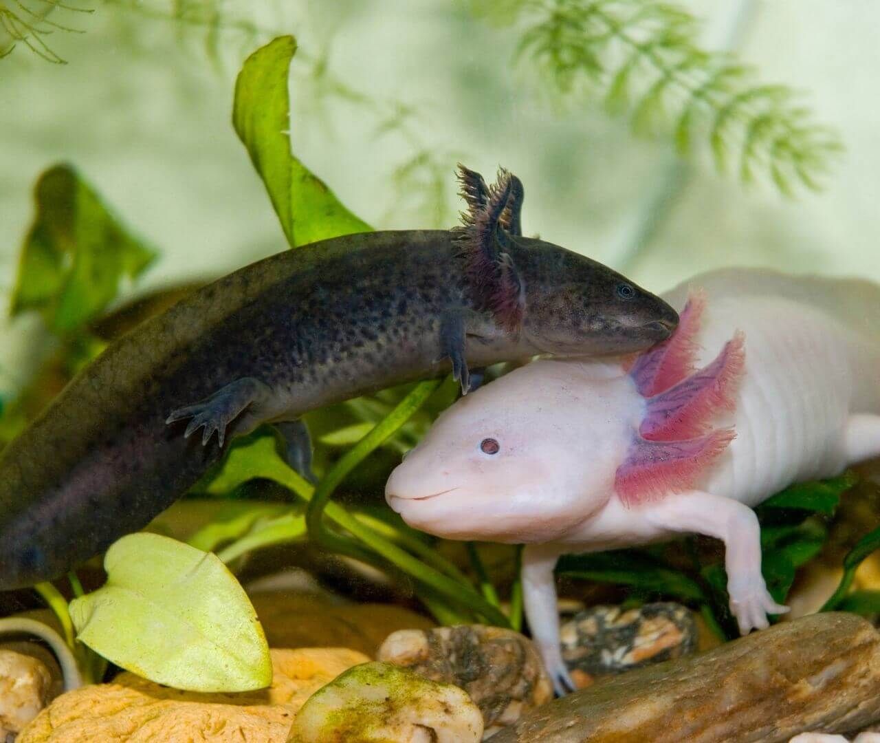 Axolotls experience neoteny. They look and act like larval salamanders for their whole lives.
