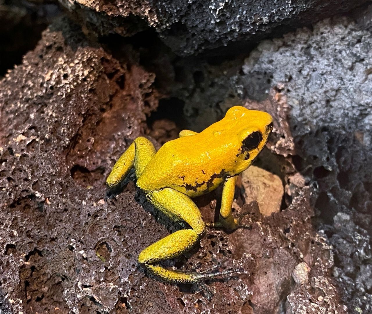 Like most poison dart frogs, golden dart frogs get their toxins, or poison, from their prey. They mostly eat ants, but they also eat beetles and other insects. Scientists still question which insect gives golden dart frogs the dangerous toxin, though they think it may be from a beetle species. They also hypothesize that the golden dart frog changes the toxin to make it more dangerous once it has entered their body.