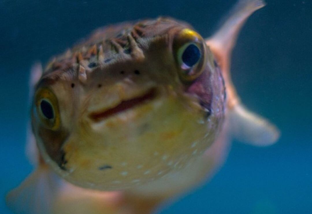 Humphead parrotfish are almost 5-ft long and weigh more than 150-lbs, making them the largest species of parrotfish! This giant fish is found near coral reefs in the Indian and Pacific Oceans where they feed on corals and the algae that grow on them. They ram corals using their large heads to break off small pieces or chomp right through the larger pieces with their strong teeth. Their teeth are cemented together forming a beak-like mouth.