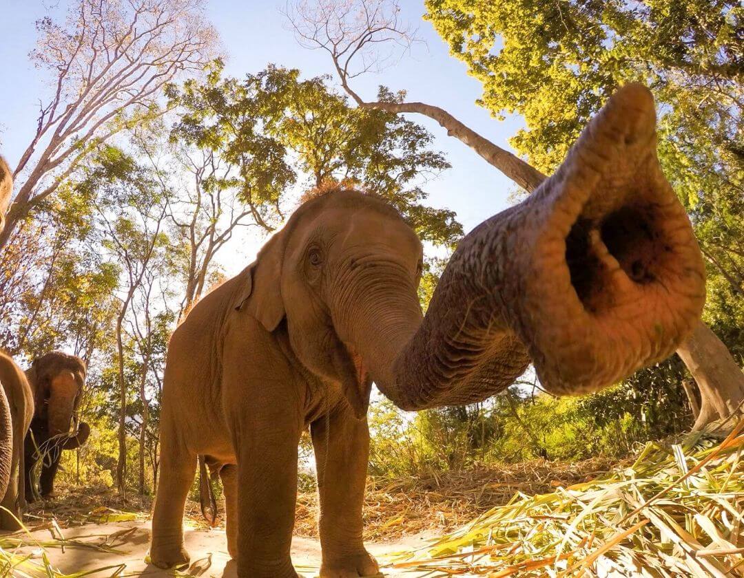 Unlike African bush elephants that live on open savannas, Asian elephants are found in forests and surrounding grasslands. Asian elephants are typically smaller than African elephants and only the males have ivory tusks! Though Asian elephants are very different than African elephants, they have one major trait in common: their herbivorous diet and their love of fruit.