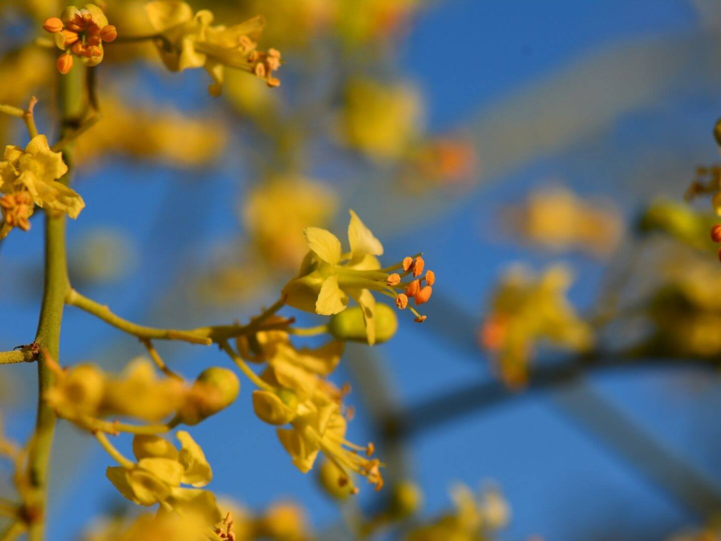 Creosote bush seeds are covered in small, white fibers that help it float far away from the mother plant!