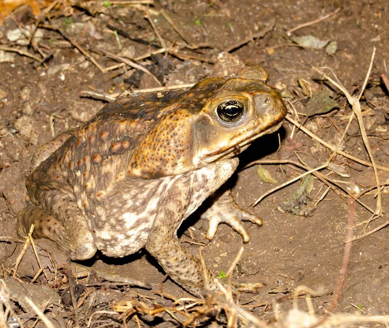 Cane toads are originally from tropical areas in Central and South America. These toads are poisonous and known for their big appetite. They usually feed on insects and small animals, like lizards and rodents. In the early 1900s, people brought cane toads to Puerto Rico to eat the cane beetles and protect the sugar cane crops – and it worked!