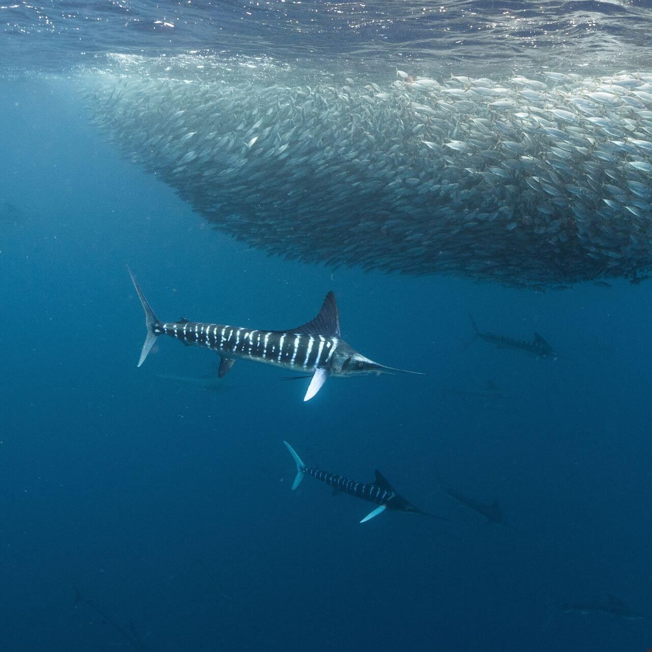 A group of predatory, saltwater fish consisting of marlins and swordfish.