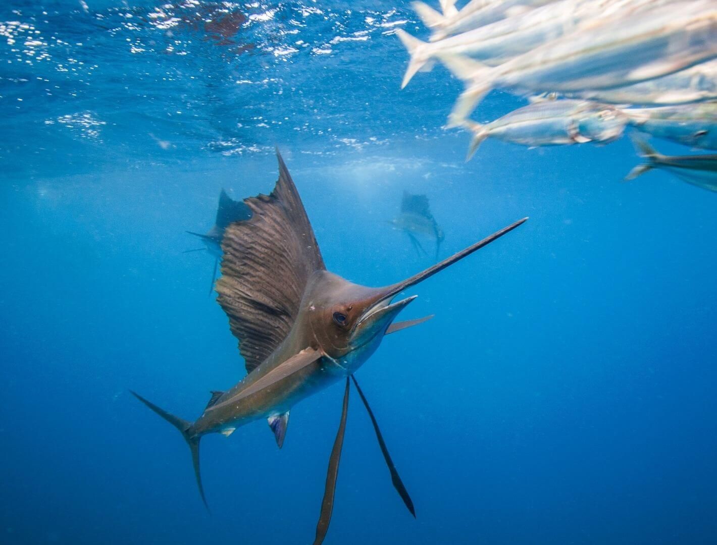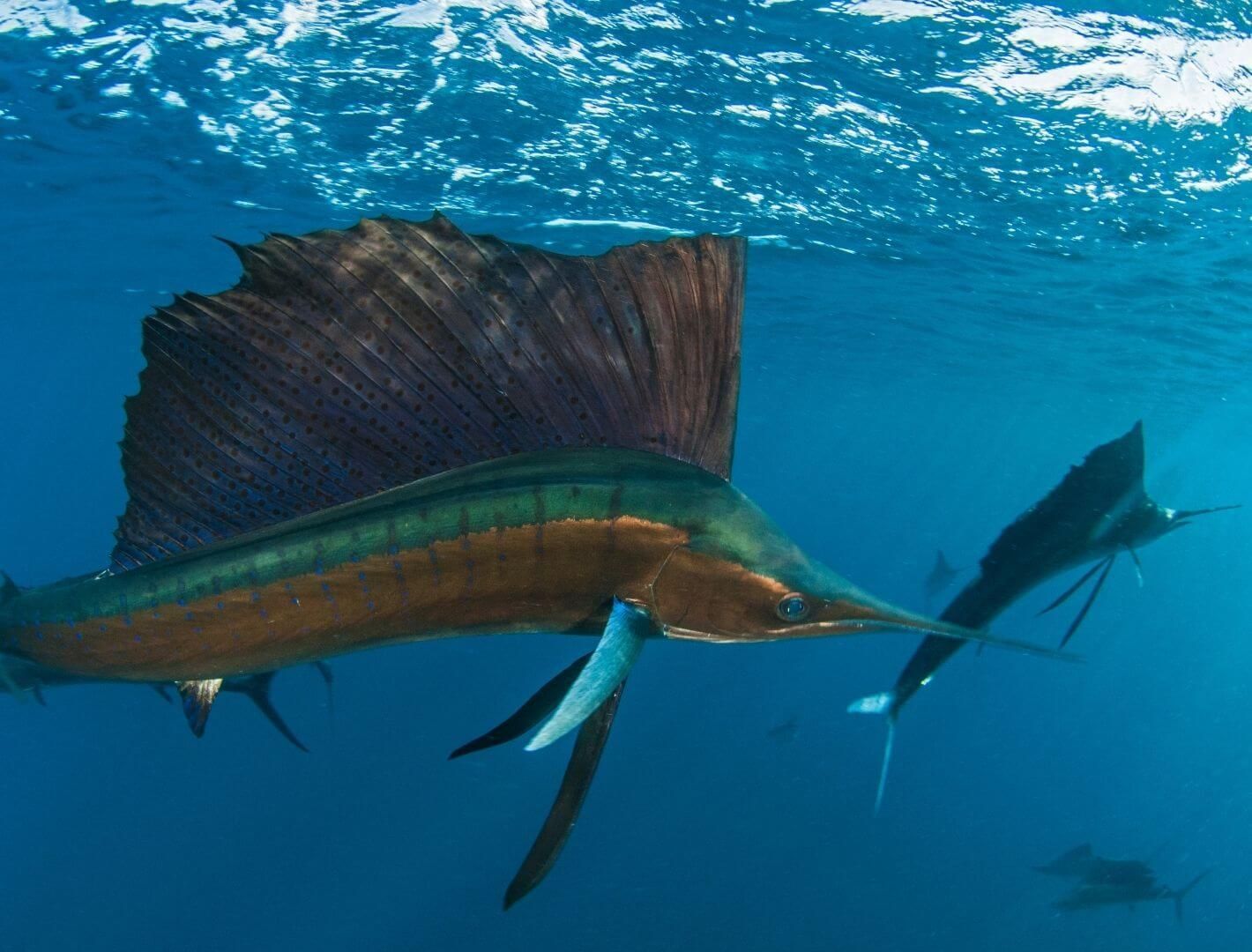 Measuring a sailfish’s top speed is challenging. Scientists often measure their speed when they are hooked on a fishing line. They measure how fast the line is pulled from the reel. Fishing for marlins may seem harmful to their populations, but it can actually be helpful. Visit our Conservation Corner below to learn more.