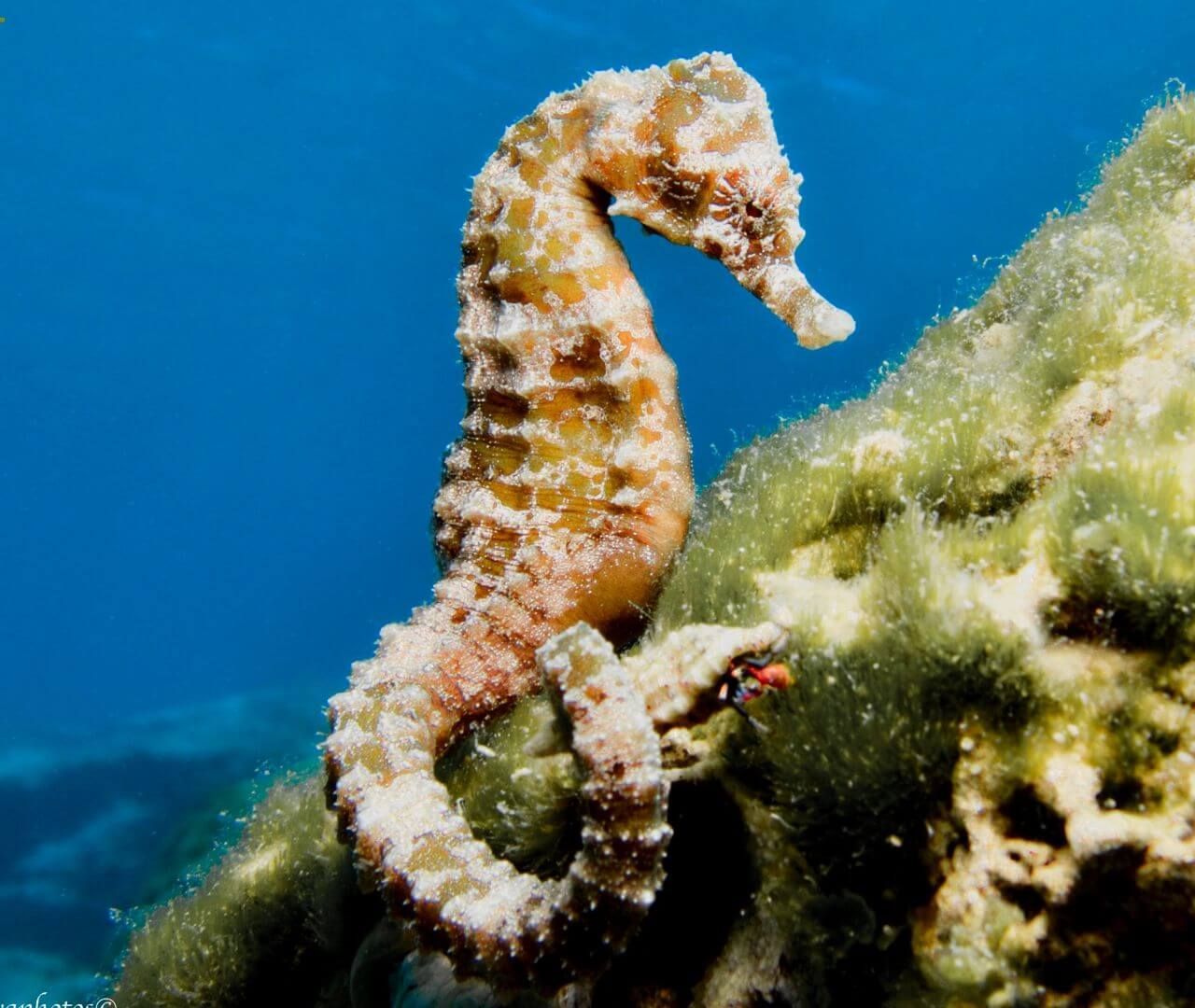 - Seahorses use their prehensile tail to grasp onto rocks and coral.