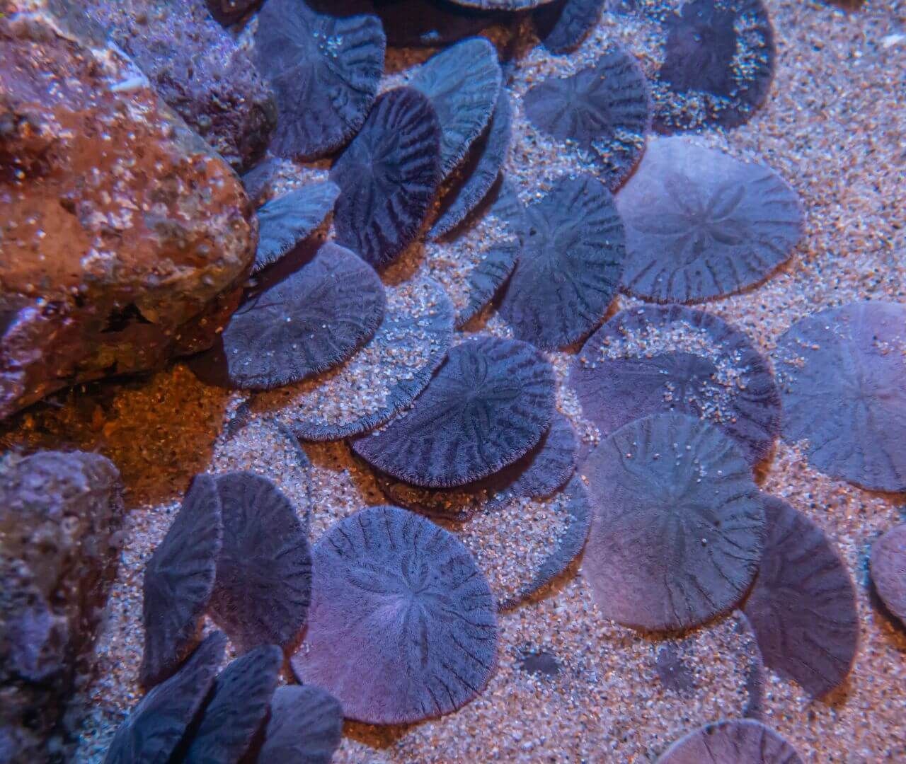 Most of us picture sand dollars as chalky, white disks. Most sand dollars washed up on the beach are already dead. Their white skeletons are all that remain. Sand dollars look much different when alive!