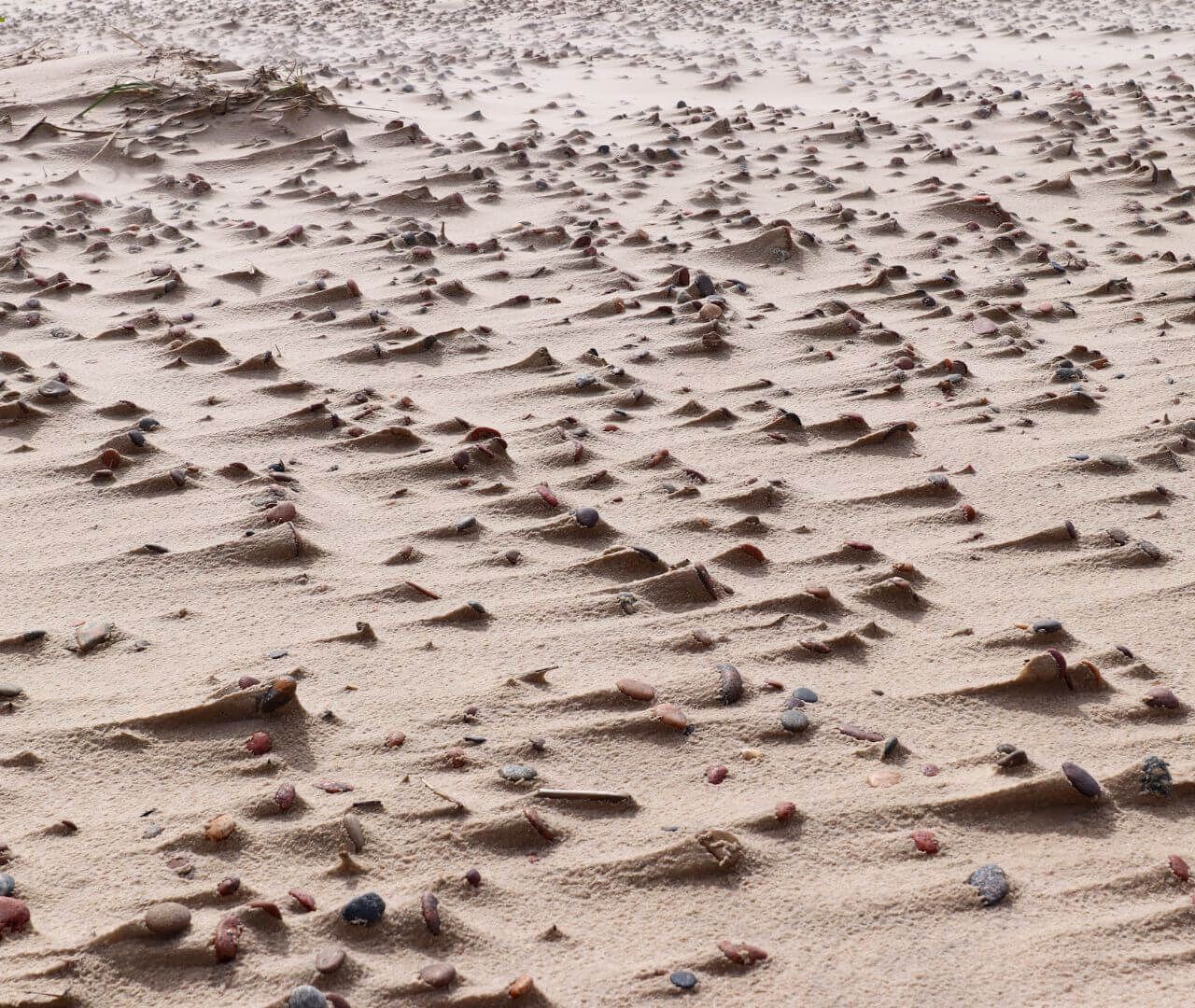 The fragments of broken shells and sand dollars get mixed into fine sand. They help hold the beach in place. Without these fragments, the fine sand easily washes away with the tide, causing the beach to erode over time.