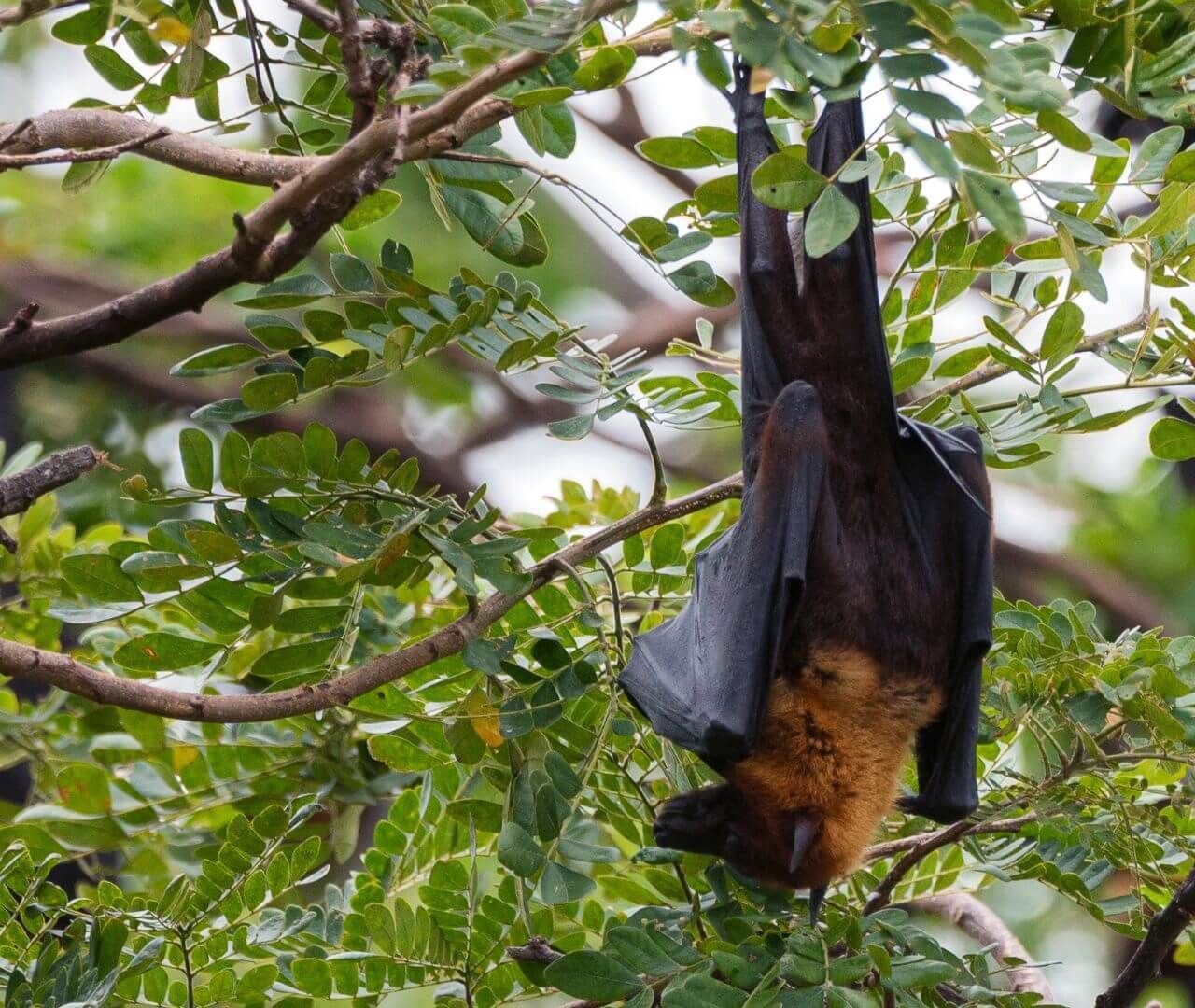 Because Indian flying foxes play such important roles in their habitat, they are an important species to protect. However, like many species of flying foxes, Indian flying foxes are seen as a pest because they feed on fruit crops like mangos and guavas. Farmers hunt the flying foxes to protect their crops. Some farmers have started using new methods that keep their crops safe without harming flying foxes! Read the Conservation Corner below to explore how new crop-protection methods are working to save Indian flying foxes and their habitat.