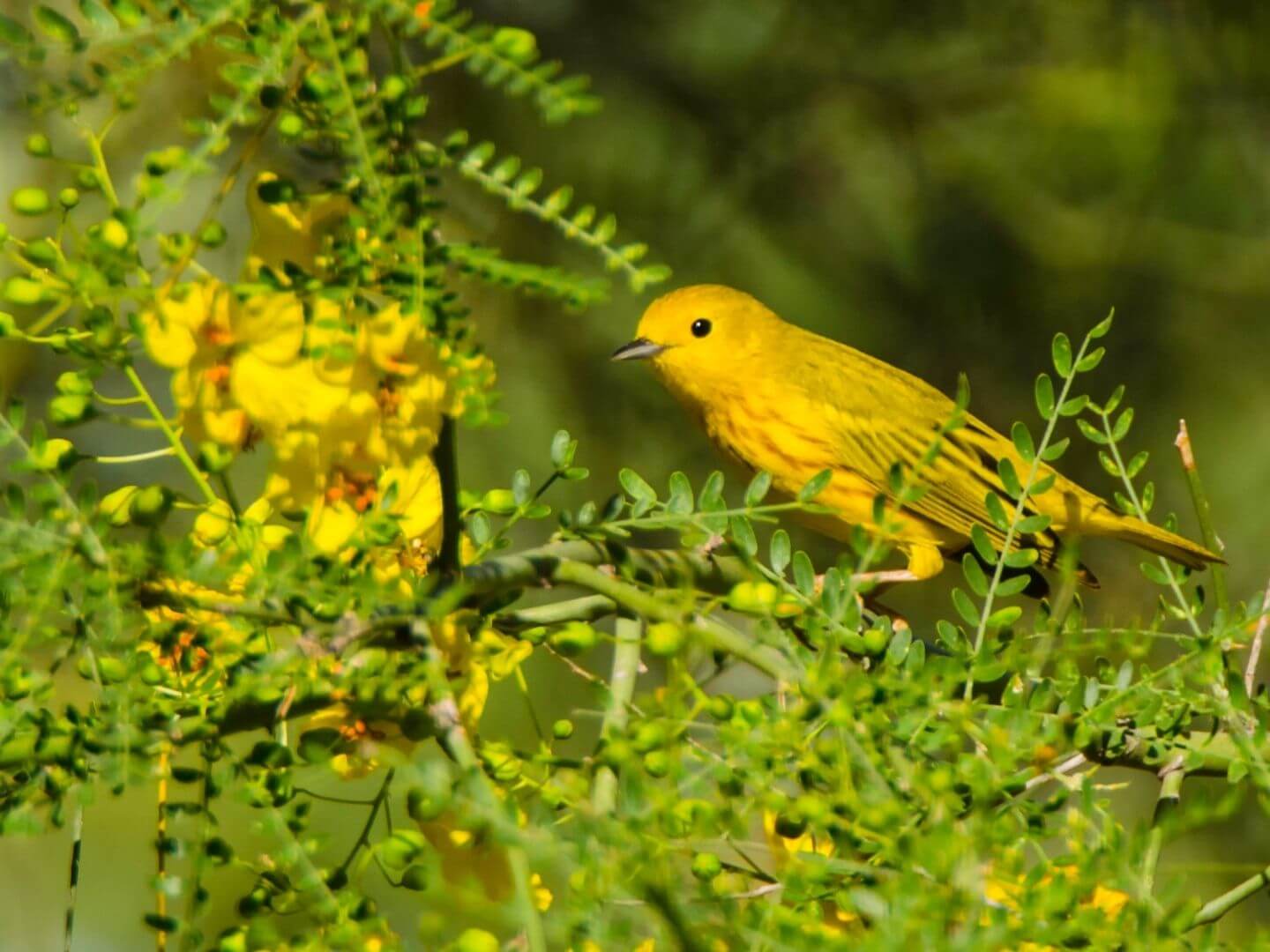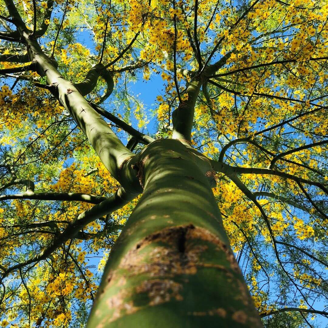 Yellow palo verde trees are one of the most common trees in the Sonoran Desert because of the incredible adaptations that help them survive in hot, dry environments. The name "palo verde" translates to "green stick." This may seem odd, but only until you take a close look at the tree. While palo verde trees do have green leaves like other plants, their trunk and branches are also green! Typical plants have most of their chlorophyll in their leaves, giving leaves a green color. Palo verde trees not only have chlorophyll in their leaves but also in their trunk and branches.