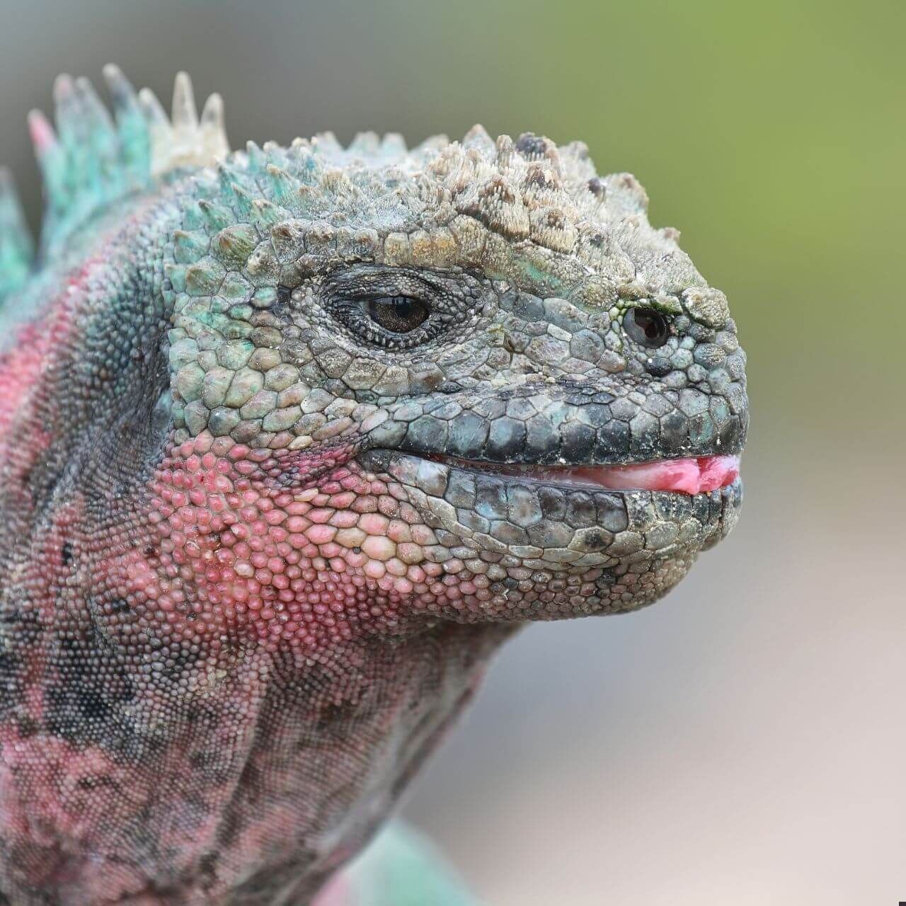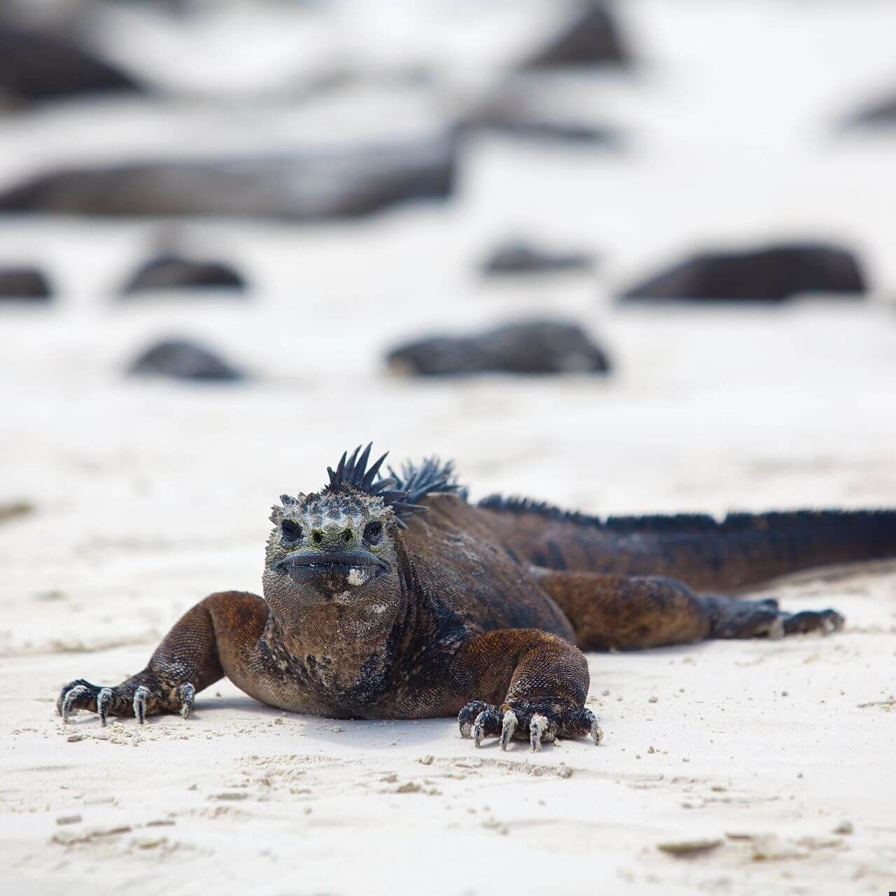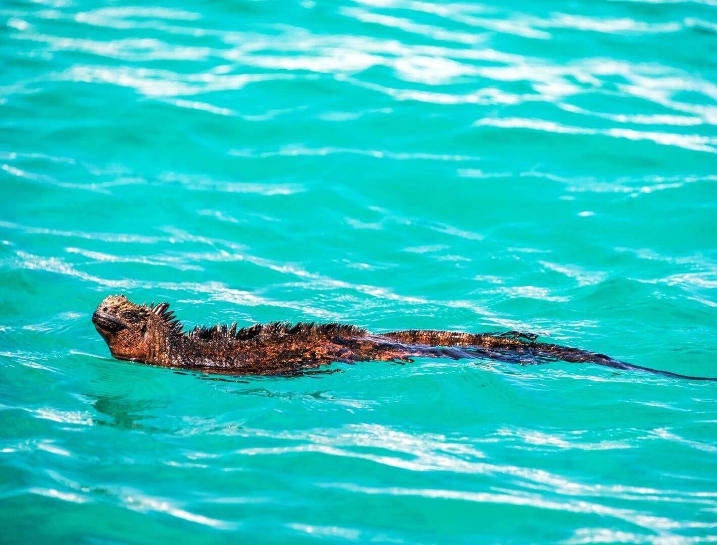 Marine iguanas are the only lizards in the world that find their food in the ocean. Their blunt snout scrapes algae off rocks along the seafloor or in the intertidal zone.